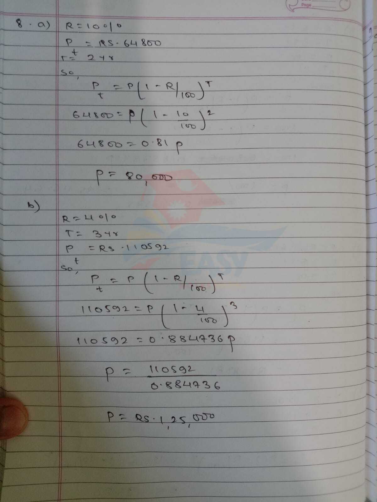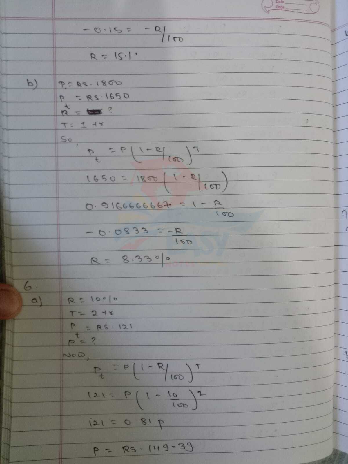 Donβt mix up the formulas β growth uses +R100+ \frac{R}{100}, depreciation uses βR100- \frac{R}{100}. Always write the formula first before substituting values to avoid silly mistakes.