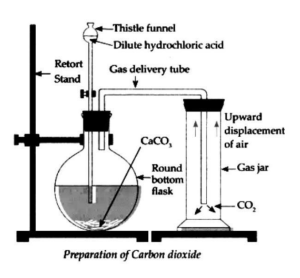 a. Describe the laboratory preparation of carbon dioxide with a labelled diagram.